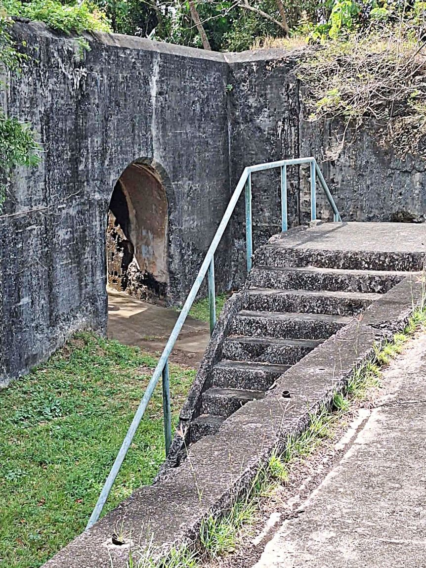 LAS17 picture shows the bridge which leads to Battery Grubbs gun control station at the rear of the battery, it was much damaged during WWII.