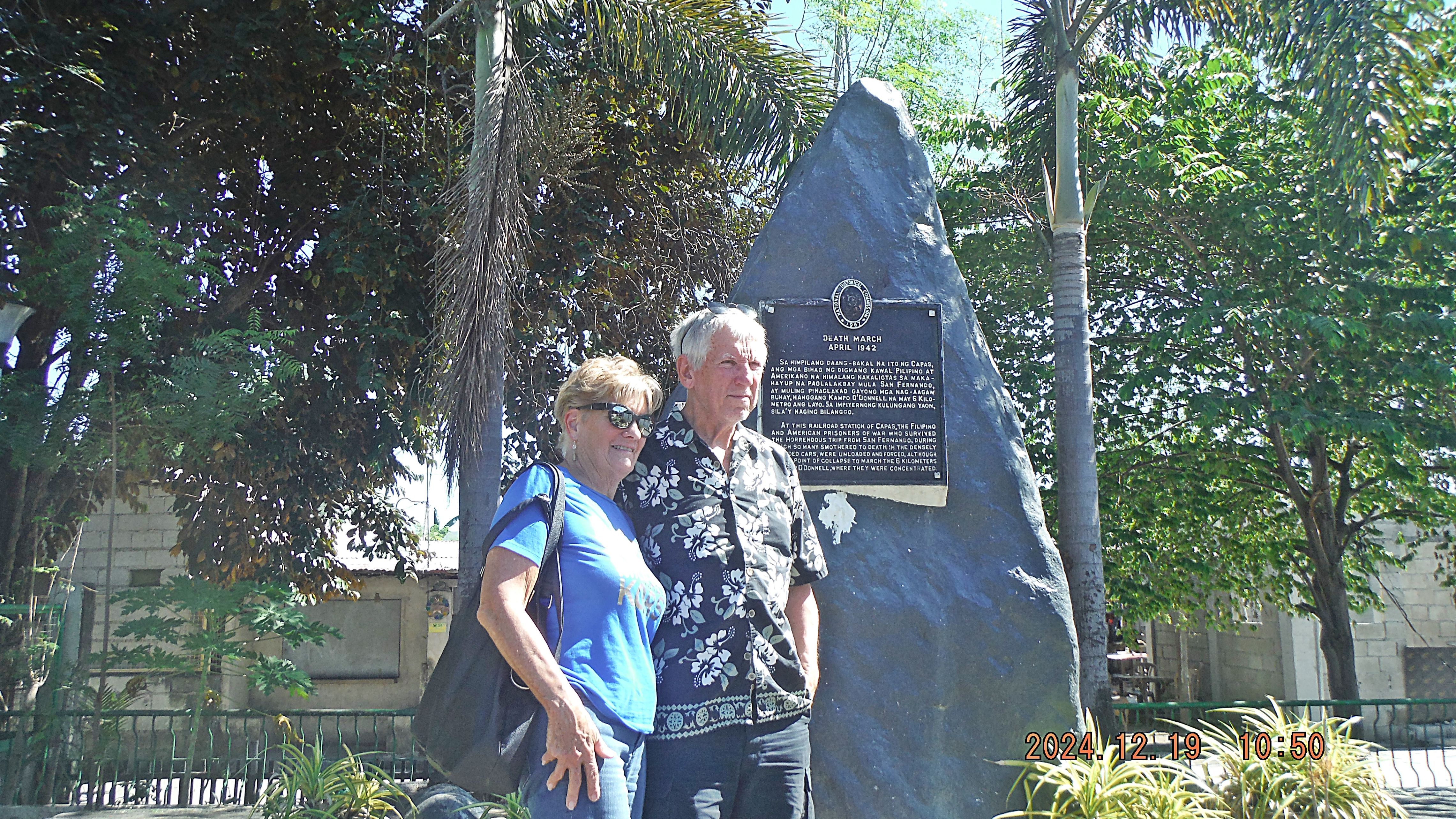 # 03 to #05 Capas Railroad Station. These are 3 pictures of the historical plaque and monument of the Capas Railroad Station where the POWs unloaded and marched 6 Km to Camp O’Donnell. John Duresky and spouse planed for a long time to visit the WWII Battle Fields in the Philippines.