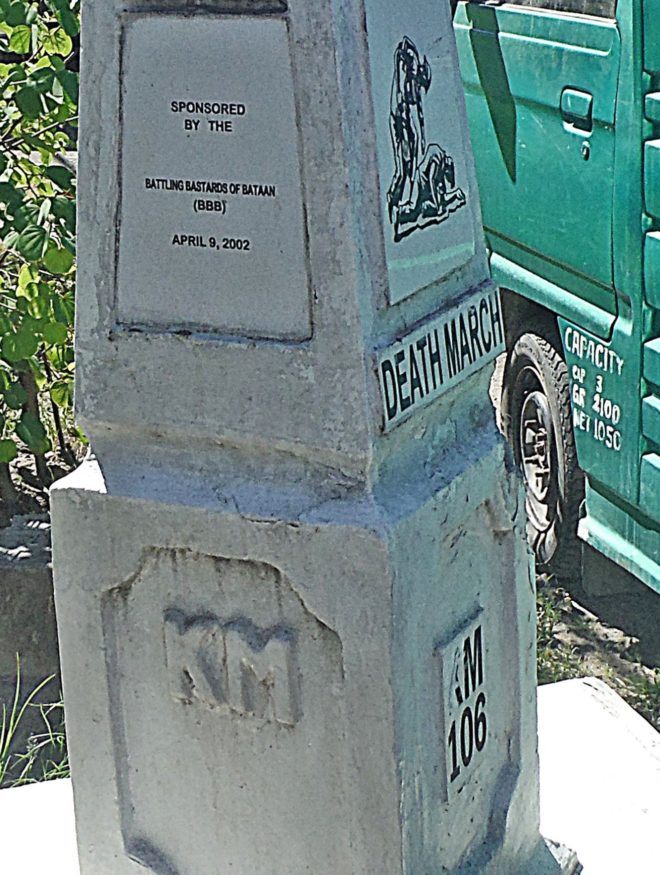 # 06 to #09 Capas Railroad Station. These are 4 pictures of the Death March Marker #106 located here at the Capas Railroad Station. This one is sponsored by the famous Battling Bastard of Bataan (BBB) a WWII veteran association. From here are 6 more markers, the last one at the entrance of Camp O’Donnell is #112.