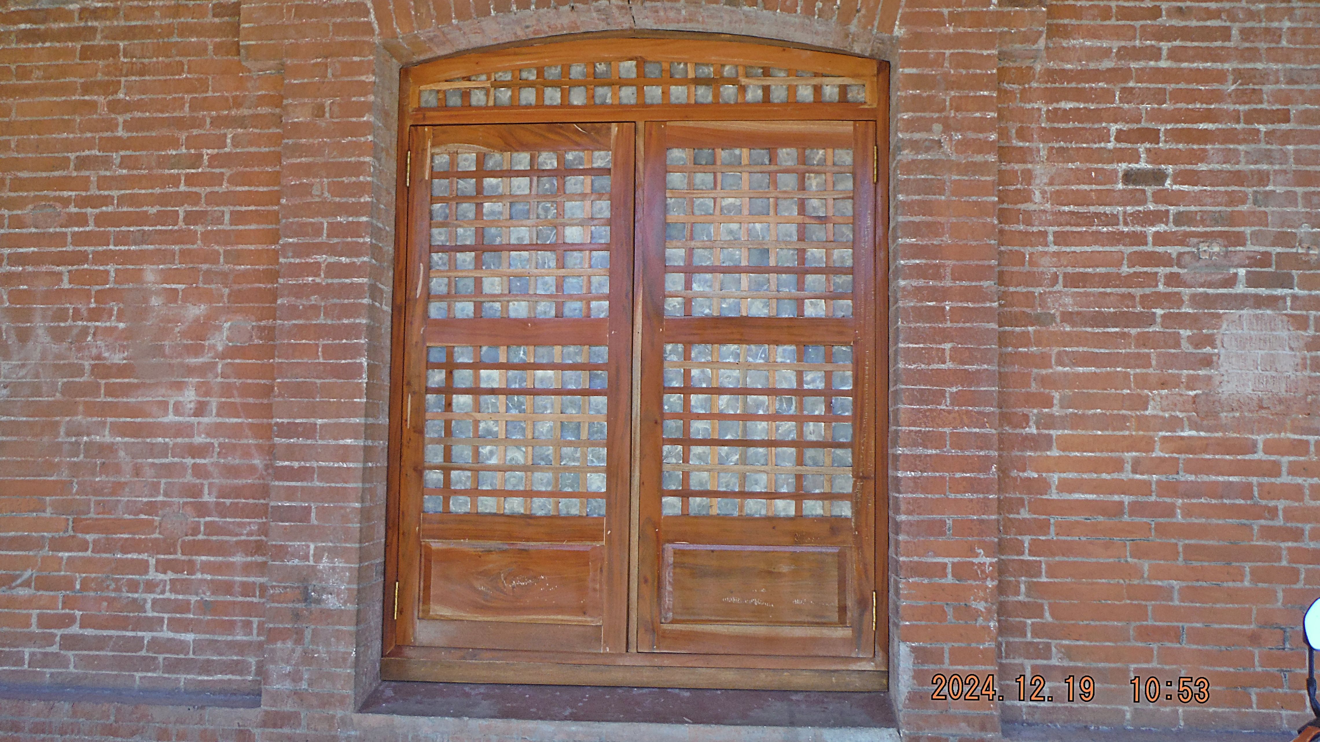 # 10 to #13 Capas Railroad Station. These 4 pictures are of the front, the street arrival side of the Capas rail road station. It looks pretty good; the false ceiling seems to be intact. I know in the past the BBB donated money to get it in good shape and open a museum. One picture is shot to inside but it seems to be empty now. One needs to go to the Capas Municipality Hall (nearby) and request entry for historical research and views.
