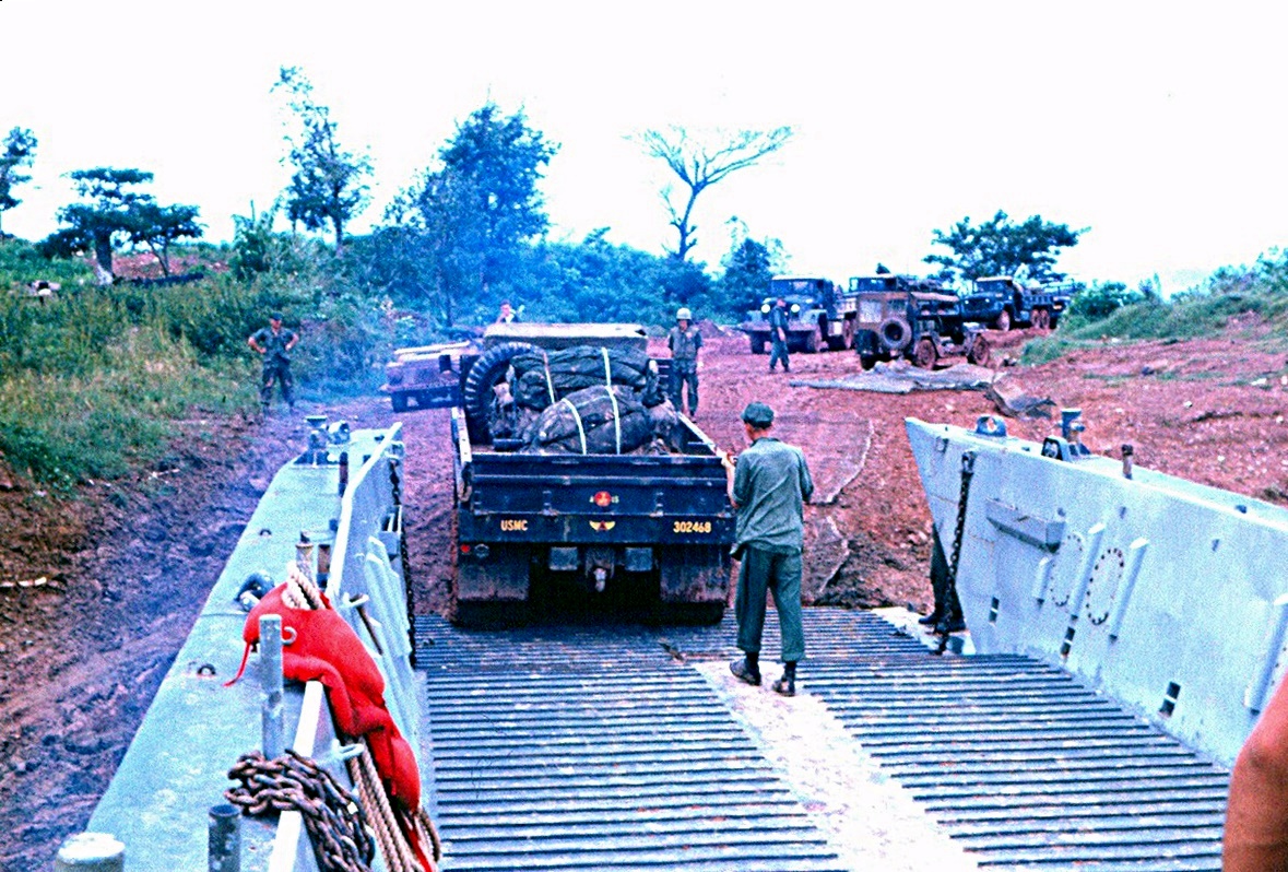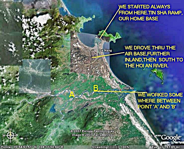 I served almost 3 years in Da Nang I Corps, and one of those years as a diver on the Da Nang Diving Barge. For a few month in 1967, about every two weeks we drove by truck to this Hoi An River and replaced either the screws, shafts or bearings of the Navy LCM-8; the river was shallow and these items wore out or got damaged. On the map I provided, the river is named Song Thu Bon but it flows into the South China Sea at the famous Viet Namese Town of Hoi An, I prefer to use that name. At that time the USMC run the South Viet Nam tactical zone I Corps, but apparently were reinforced with a Navy LCM-8 landing craft to help crossing this river at this location.