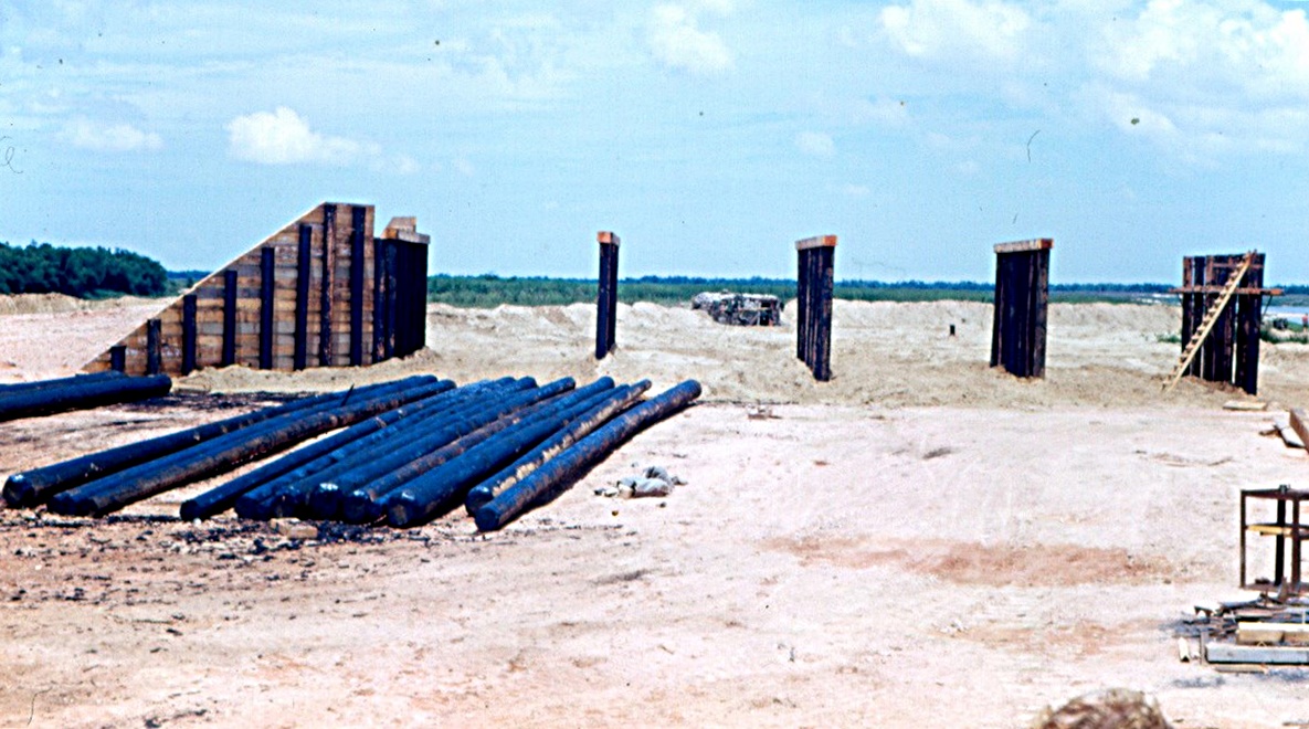 #1967HoiAnRiverJob08 picture shows that the Navy Seabees arrived and are beginning to build a bridge across the Hoi An River or Song Thu Bon River. At that time the USMC run the South Viet Nam tactical zone I Corps.