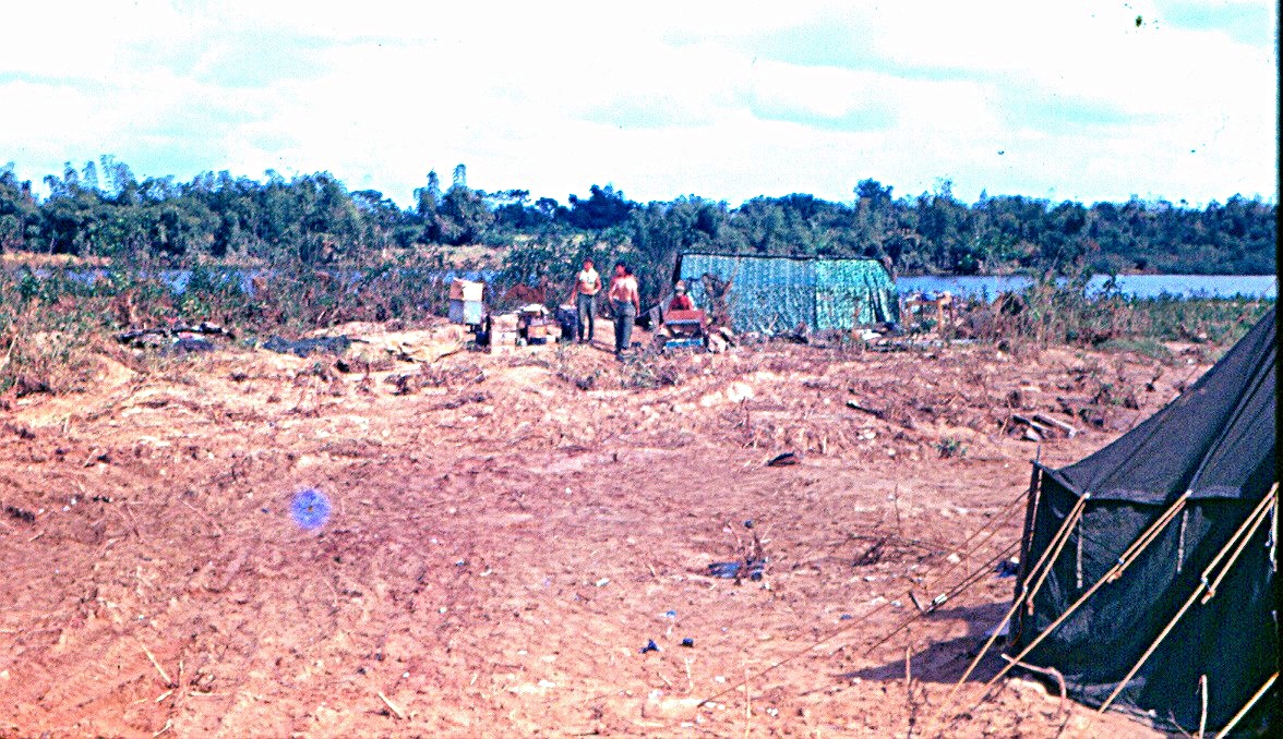 #1967HoiAnRiverJob01 picture shows the Navy LCM-8 Landing craft on the Hoi An River or Song Thu Bon River we often had to repair under water. We are on the North Bank of the river.