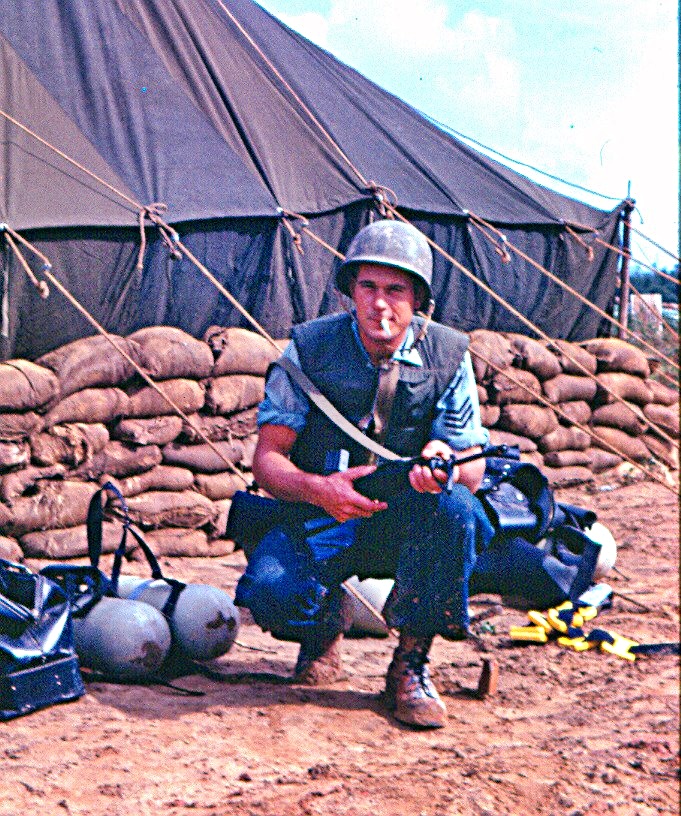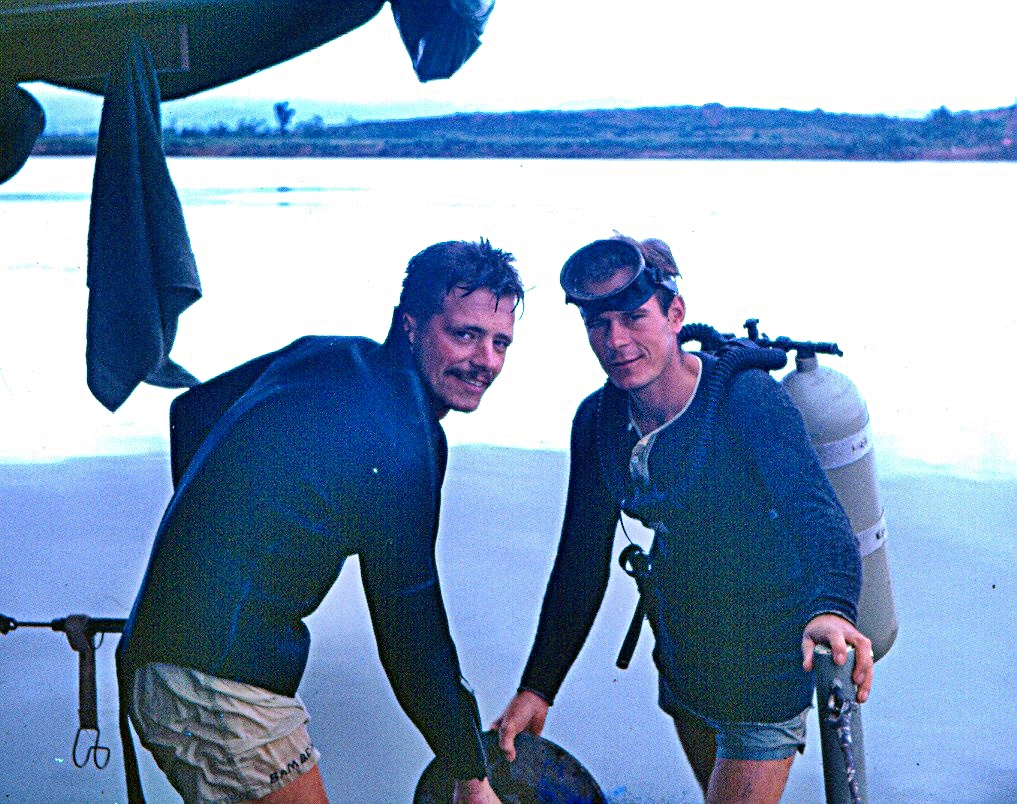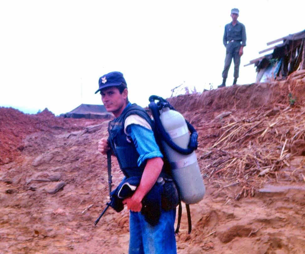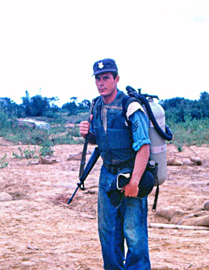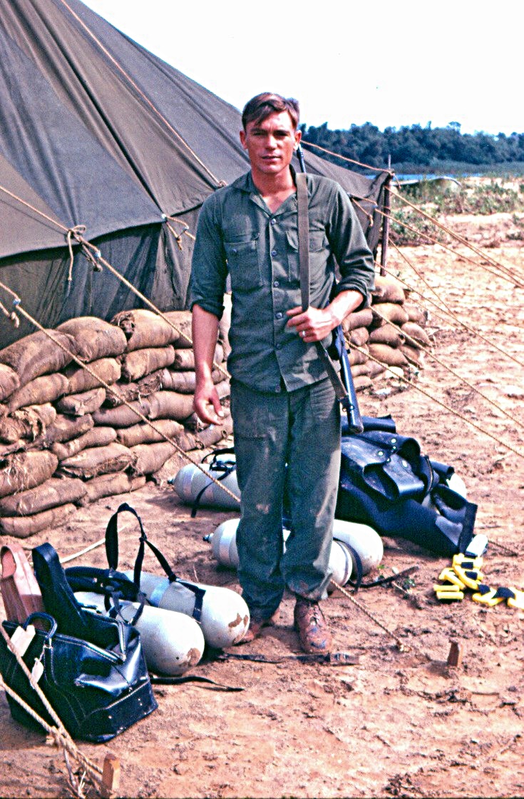 #1967HoiAnRiverJob12 picture shows my buddy BM2 Fitzgerald, also a 2nd Class Navy Diver then. We both met again in Pearl Harbor and both retired there. We both joined the Navy on the 14th July 1960 but he was 2 boot camp companies behind me. He had come from Texas by train but I arrived by plane from Salt Lake. When I learned he was 2 companies behind me I called him “Boot Camp” ever since.