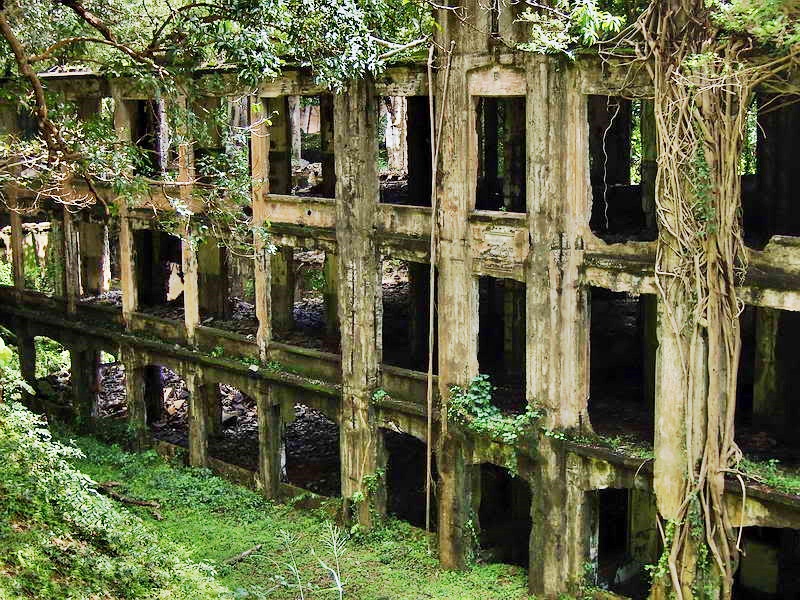Today the state of the barracks ranges from reasonably intact to just rubble as you will see in the following photos. The top floor is quite dangerous in places and you certainly have to exercise caution there. The day tour buses stop at the roadside but no one is allowed near the buildings. I would say a project about three years ago to reinforce fragile areas has been quite successful. Even a strong typhoon a few months ago did no damage that I am aware of.