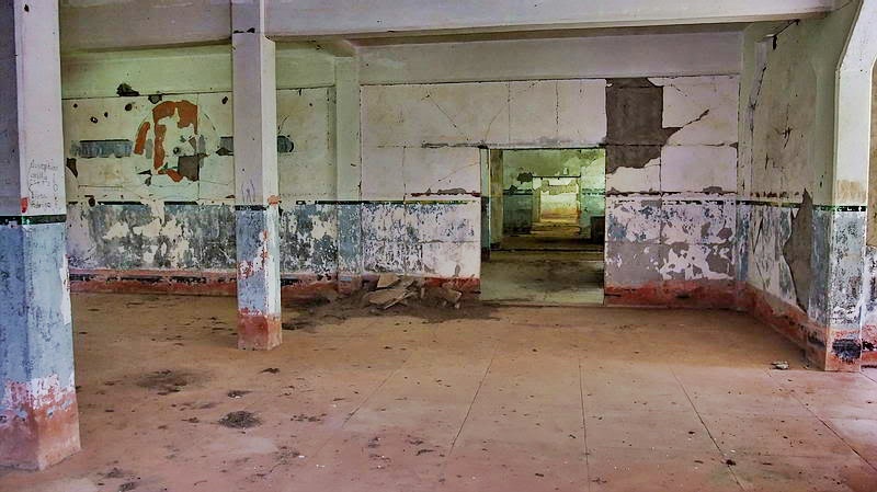 Built in 1915, Middleside Barracks was a modern structure for its day. I have never seen any sort of blueprints for the barracks so I cannot label any locations or room functions. Toilets and showers are obvious. Only one room had any indication as to who was quartered there.