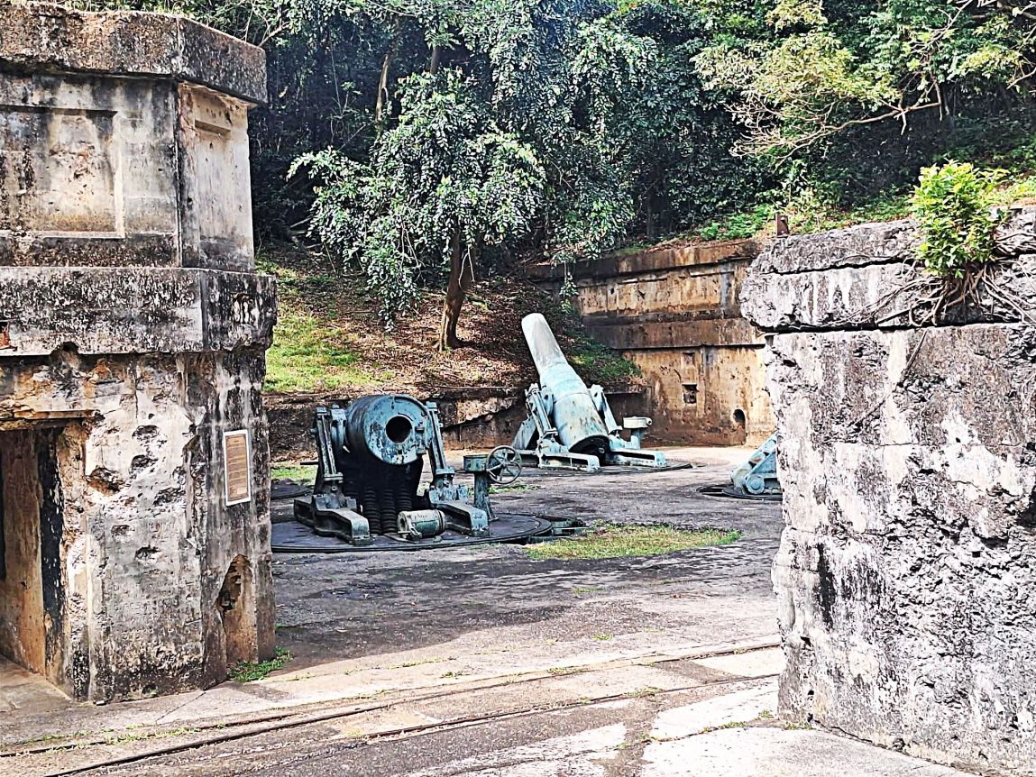LAS14 and LAS16 Corregidor, VFW11447 pictures show the outer area of Battery Way, this was our 2nd stop where we debarked our trolley. We already presented a special picture presentation of this battery a few days ago. This site is kept free of wild vegetation which will help to protect it from the destructive nature of wild vegetation covering the other ruins.
