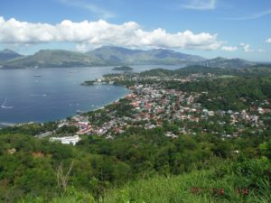 Za026. (-057). This is one of five images of Barrio Barretto from what I call the South Ridge-line; it is part of the Kalaklan Ridge which separates Barrio Barretto from Olongapo and SBFZ. This is Down Town Barrio Barretto, part of Olongapo City. Before the war it was the Naval Rifle Range, in 1945 it became a Naval Supply Depot. Sometime later it was turned back to the Philippine authorities and is now a popular tourist destination. We also see the Redondo Peninsular with Mt. Redondo, the north end of the Subic Bay bay, Matain Village and the Santa Monica Subdivision.