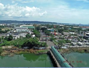 -05. These are the land marks for this picture of SBFZ, the ex U.S. Naval Base Subic Bay the. At right is the east end of a new Ayala Mall. Next to it about 5 storeys high and with a red rim around the roof is the last big Enlisted Men (EM) Barracks we built, it is now called the International Hotel. Across the Olongapo Harbor is a large bulk grain building and grain silos. That was the Air Craft Carrier Wharf “Leyte”. To the right of it were the Officers Beach and the actual geographic ‘Cubi Point”. They are gone now and the places, with the help of a hill near the fuel pier, it became the new Subic Bay Container Port.