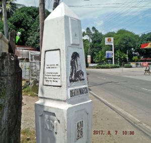 -We wanted to start with the lower half of Bataan and our first stop was the intersection of the Bagac-Pilar Rd with the old National Bataan East Rd. Here is the last Bagac Death March Marker #26, which is the distance across Bataan. We are looking west. The last Bagac Death March Marker #26, American Legion Post 94 sponsored it.