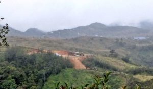 From the trail to Santa Rosa, where the 126th Reg. attacked, we are looking east over the Salacsac Passes and the area of the Malico Village (Barangay). On the peak right of center is the Japanese Monument.