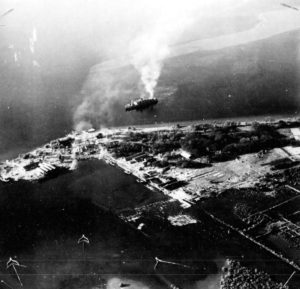 Note from dmether: I’ll try to get this sequence in the right order. This picture is of Subic Bay, Nov 44. A month before the Oryoku Maru, however it’s oil slick can be seen in later photographs.