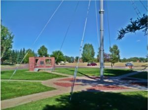 This picture was shot at the bottom of the flagpole on the F. E. Warren Air Force Base. Two of the Balangiga Bells are displayed here on F. E. Warren Air Force Base (AFB) located in Cheyenne Wyoming. One more bell is located in Korea with an US Army unit there. Photo credit: John Johnson, he is a veteran, works at the VA Hospital at Ft William Henry Harrison in Helena, Montana.