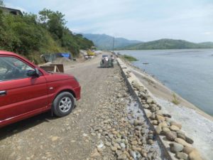 I returned to the old and original Zambales-Tarlac Road where it approaches the entrance to the new and large resettlement Village Baquilan. The Bucao Dike and road are being worked on. Dead ahead across the Baquilan River is the Baukok River Valley which the new Zambales-Tarlac Road is using.