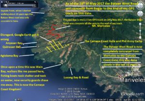 Za553. A Google Earth image with the status of the Bataan West Road being concreted.
