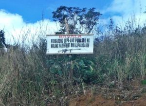 032. I thought this sign was cute: Warning-don’t enter and a sniper rifle to emphasize the point! Bataan West Road. This was at the head waters of the Agloloma River.