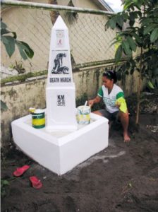 Za594. Rosalie Hudson painting a Death March Marker. Courtesy Bob Hudson or Stars and Stripes.