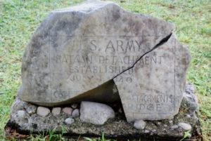 Za595. A US Army marker at the Death March Marker Shrine KM Zero (0) at Mariveles. Courtesy Bob Hudson or Stars and Stripes.
