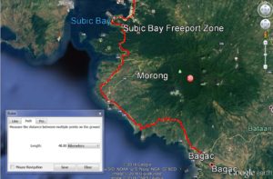 Za602 Distance from Bagac to Olongapo, about 48 km.