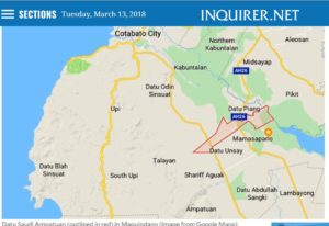 Za684. Datu Saudi Ampatuan -outlined in red- in Maguindano. Image from Inquirer.net.