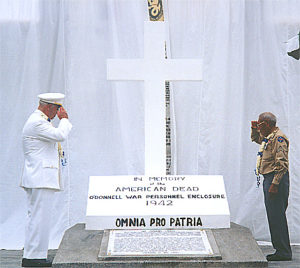 Za699. Camp O’Donnell Memorial. Maj. Richard Gordon and Phil Coon unveiling the Cross. This is a BBB image.
