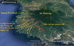 This is my GPS track of our walk on the Signal Hill Road at SW Bataan. Due to Operator error I had to restart it and I forgot to save the track until we returned down, almost back in Mariveles with our car.