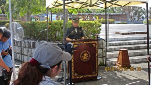 Za897. Tribute to Filipino Heroes on Corregidor 7th April, 2018, a speaker.