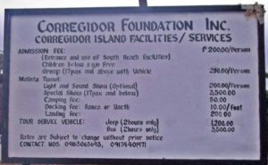 Za983. Corregidor Foundation Inc (CFI) information sign at the south shore, Bottomside, Corregidor Island.