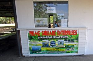 Za984. Prime Square Enterprises information sign at the north shore, Bottomside, Corregidor Island for island tours.
