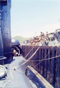 Grayback (LPSS-574) at Subic Bay, Philippines in 1970 before underway ops. SEAL’s on pier. Right side of submarine = open hanger doors & ships diver. This picture came from a Navy sourse web page, click here!